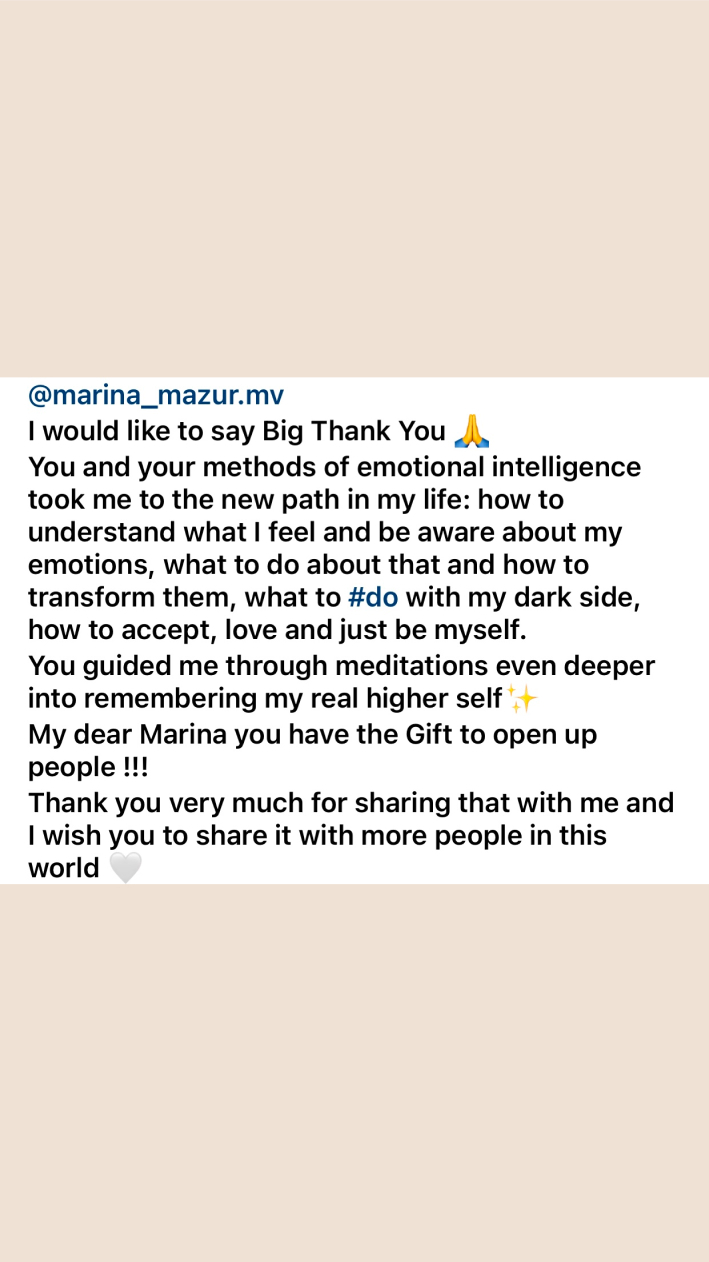 Также этот курс подойдет для тех, кто хочет предварительно познакомиться со мной, практиками и сделать первый шаг навстречу своему развитому эмоциональному интеллекту